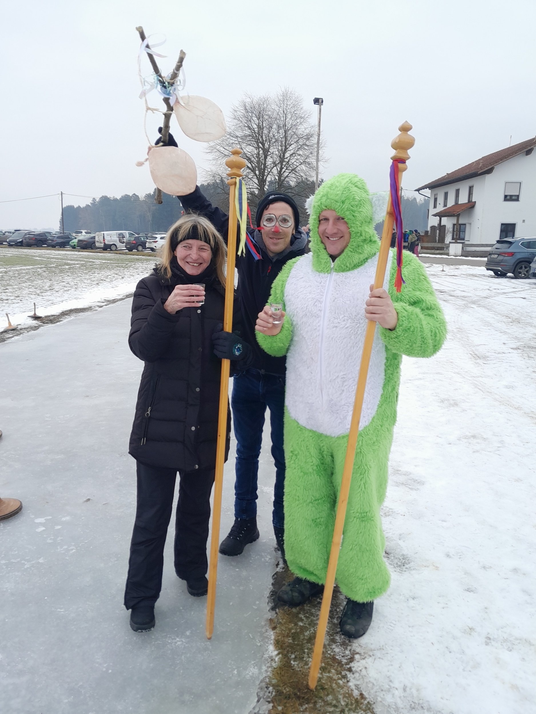 Beim Eisschiaßn segd ma, wer dHosn ohod zNeikircha. 3:2 hams heid gwunna beim Hoizmannwirt. Hi und do hod da Bojazzl midhoiffa miaßn oba sunst hams ganz legal den grandiosen Sieg eigfahrn de Weibaleid. Der Sieg wurde entsprechend gfeiert und sHase - den Moar vo de Weibaleid - hams dann zur Siegerehrung einedrong.