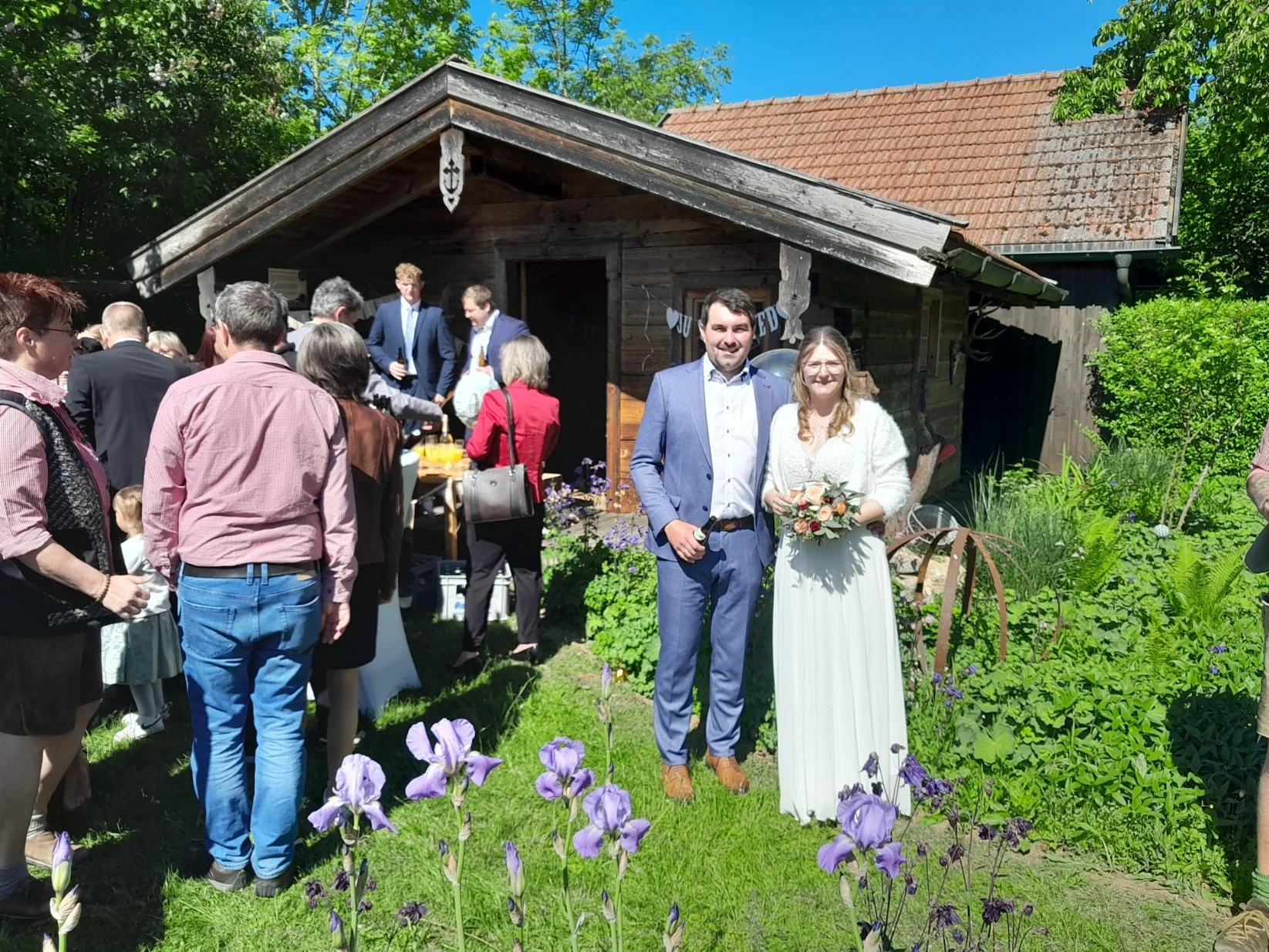 Nach der Trauung lud das Brautpaar zu einem Sektempfang an der Hütte neben dem Pfarrhof ein.