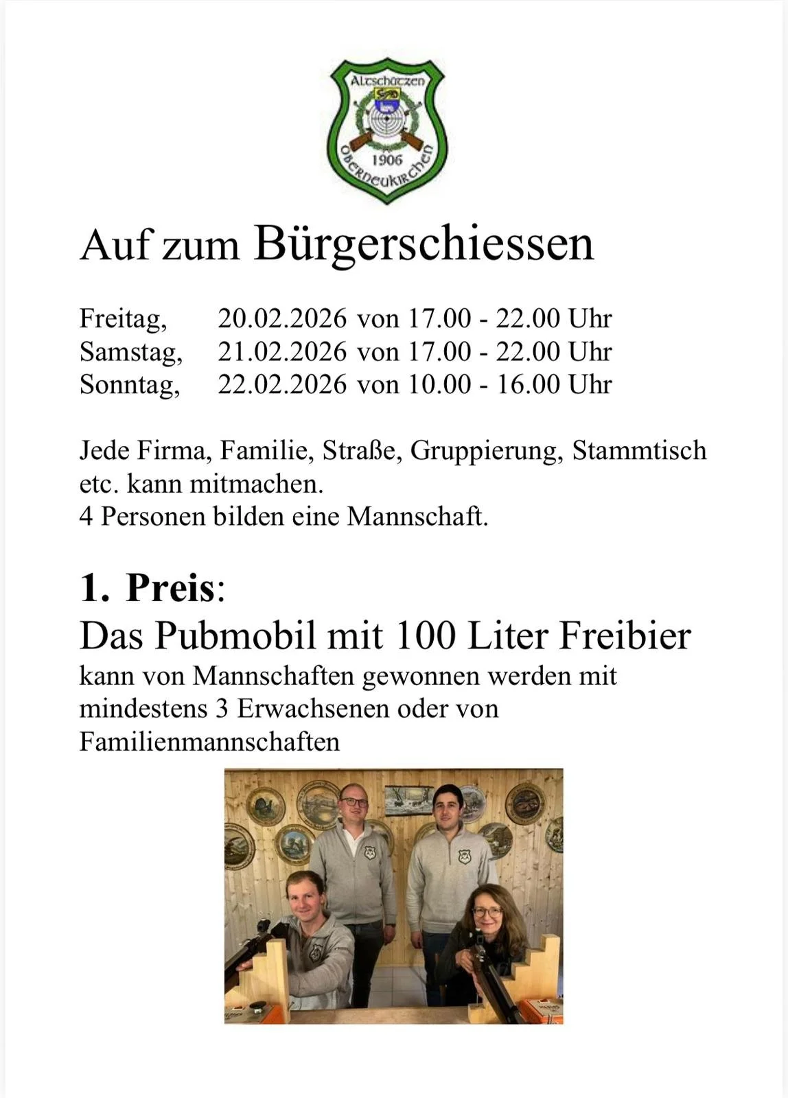 Schützen: Einladung zum Bürgerschießen 8. Feb. Verfasst von Matthias Mayerhofer Jedes zweite Jahr heißt es: Auf zum Bürgerschießen Matthias Mayerhofer