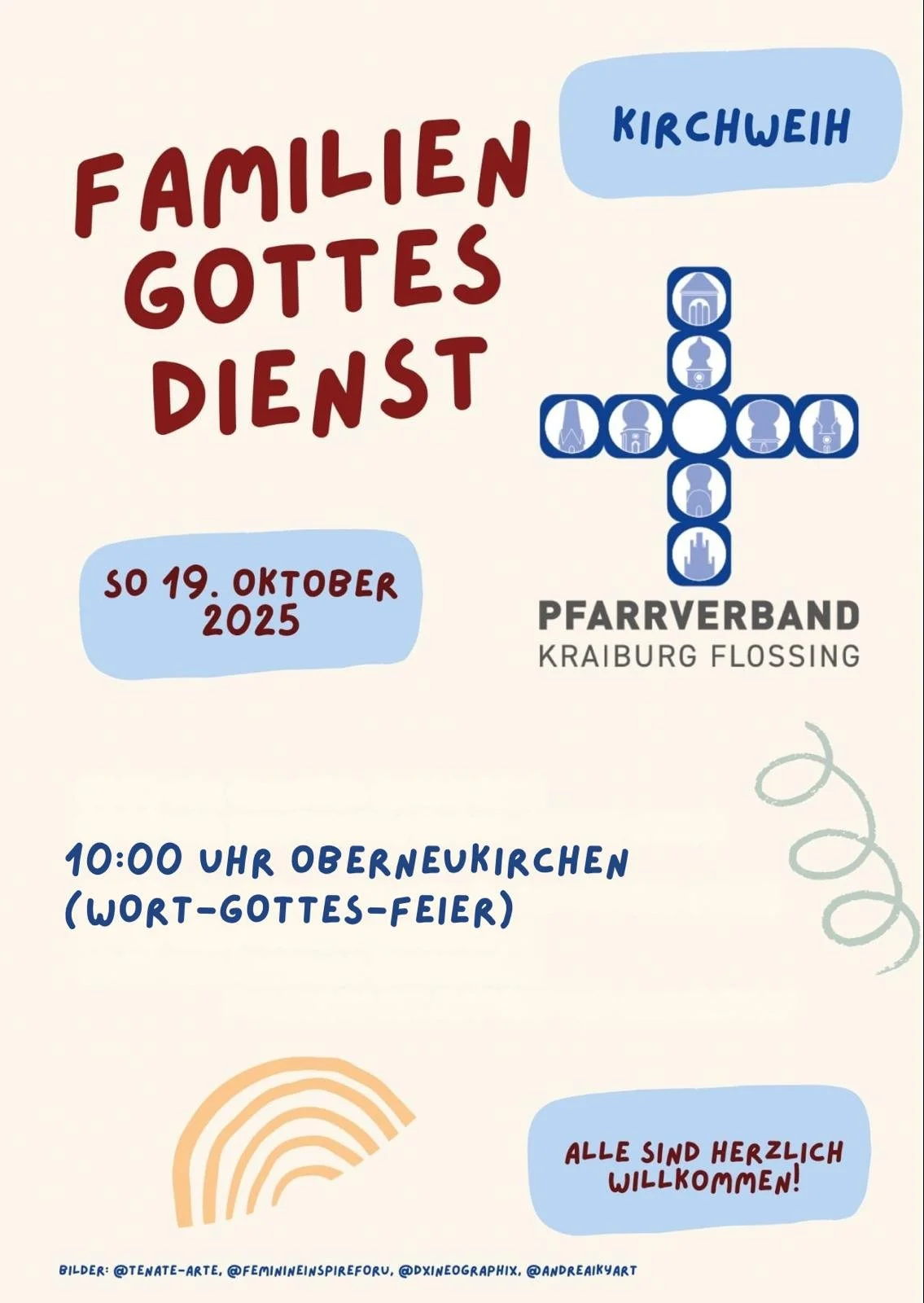 Familiengottesdienst in der Pfarrkirche Oberneukirchen Sonntag, 19. Oktober 2025 10:00 11:00 Google Kalender ICS