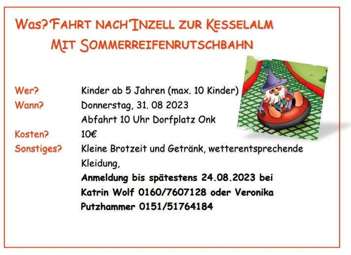 Ferienprogramm: Fahrt nach Inzell zur Kesselalm Donnerstag, 31. August 2023 10:00 20:00 Google Kalender ICS